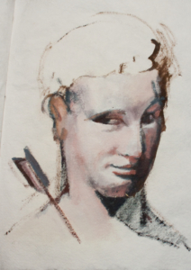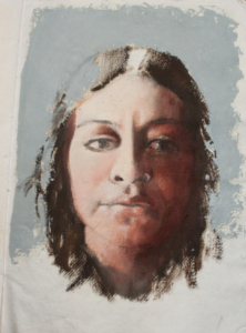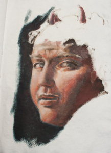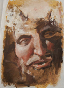 All these faces are collected in a book, a sketchbook, on handmade paper. I primed the paper with gesso, and a few times rabbit-skin glue (just to see what happens) Some faces from photos, some from photos…